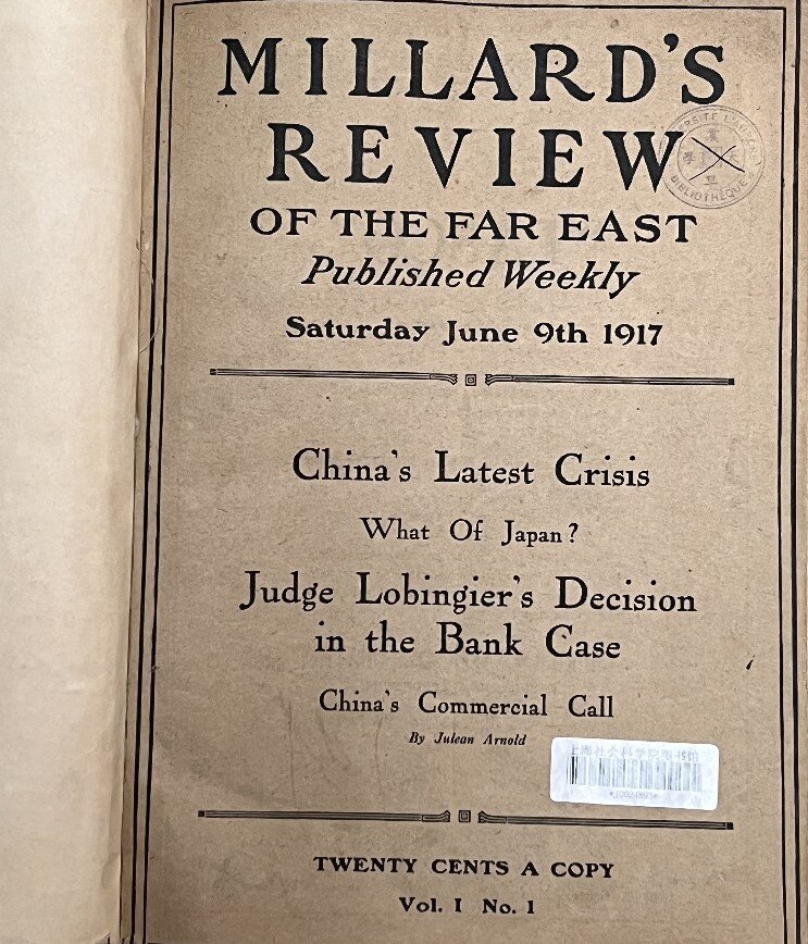 《密勒氏評論報》從1917年6月創(chuàng)刊到1953年6月終刊,除去中間???/span>4年,總共在中國出版發(fā)行了32年,其間對中國尤其是上海給予了極大的關注,成為當時向海外傳播真實中國的橋梁,也是中國認識世界的窗口,是研究近代中國的珍貴史料,具有極高的文獻價值。