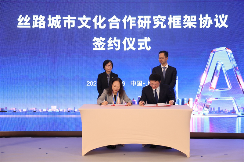 開幕式同步舉行“絲路城市文化合作研究框架協(xié)議簽約儀式”與“世界城市文化優(yōu)秀案例全球征集成果發(fā)布”,前者為跨國文化合作研究提供實踐參照,后者則為城市文化案例庫積累了豐富素材,均為后續(xù)學術轉化與智庫研究奠定基礎。
