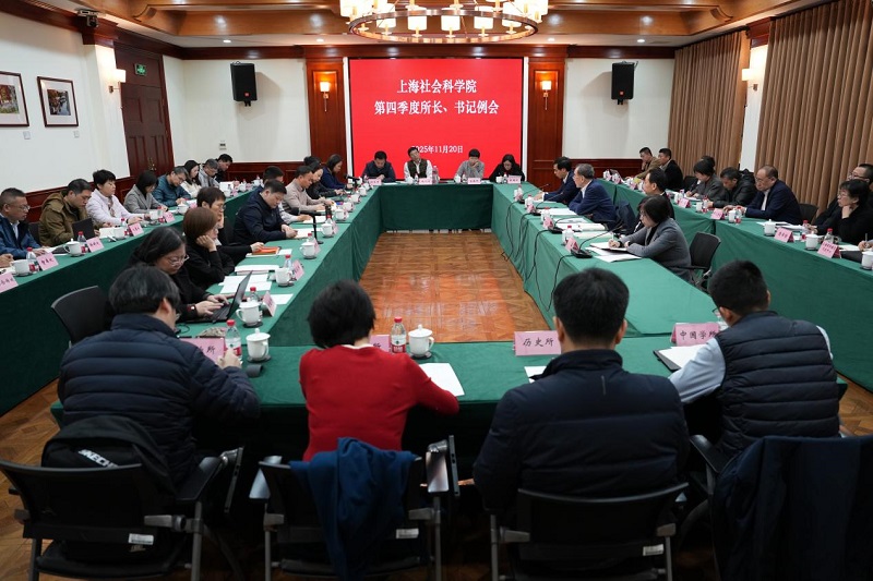 11月20日,我院2025年第四季度所長(zhǎng)書記例會(huì)在院部101會(huì)議室召開。院黨委書記權(quán)衡主持會(huì)議并講話,黨委副書記姚建龍,副院長(zhǎng)吳雪明、劉蕓出席會(huì)議。