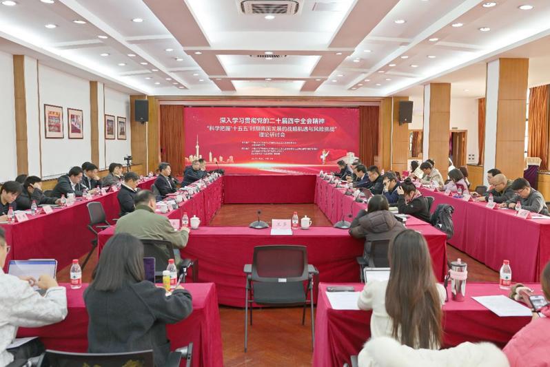 為深入學(xué)習(xí)貫徹黨的二十屆四中全會精神,11月28日上午,“科學(xué)把握‘十五五’時(shí)期我國發(fā)展的戰(zhàn)略機(jī)遇與風(fēng)險(xiǎn)挑戰(zhàn)”理論研討會在上海社會科學(xué)院小禮堂順利召開。上海社會科學(xué)院副院長吳雪明出席會議并致辭。來自復(fù)旦大學(xué)、同濟(jì)大學(xué)、華東師范大學(xué)、上海外國語大學(xué)、中共上海市委黨校、上海社會科學(xué)院、上海國際問題研究院的專家學(xué)者參會交流研討。