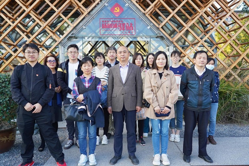 隨后,黨員同志們沿著楊浦濱江“秀”帶線,來到楊浦濱江黨群服務站——楊樹浦驛站人人屋站。楊浦濱江“秀”帶線,以黨群服務體系和7個主題鮮明的黨群服務站為支點,旨在引導黨員群眾沿濱江一線,深刻感受百年工業(yè)遺存的紅色歷史。楊樹浦驛站人人屋站是注重宣傳人文濱江、傳統(tǒng)文化和市民文化生活,將黨建、歷史與人文予以充分融合。驛站是濱江沿線一道亮麗的風景線,作為公益性的黨群聯(lián)系組織,其服務性特征與圖書館相似,支部黨員們尤為感興趣,與工作人員就如何更好地做好服務進行探討交流,大家發(fā)現(xiàn)雖然服務對象和受眾不同,但全心全意為人民服務的宗旨和初心是一致的。當天,還在站點驚喜地看到了圖書館文獻流通部主任高明在《上海支部生活》發(fā)表的文章《在開天辟地中銳意進取》。這是圖書館黨支部在去年開展學習四史教育活動以來,號召全體黨員發(fā)揮先鋒模范作用,立足崗位做好本職工作同時開展理論研究,向建黨百年獻禮的成果之一,也為當天的主題黨日活動畫上了圓滿的句號。