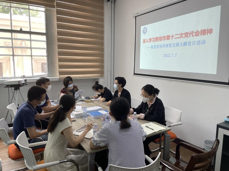 7月7日上午,院黨委宣傳部黨支部組織開(kāi)展“深入學(xué)習(xí)貫徹市第十二次黨代會(huì)精神”主題黨日活動(dòng)。院黨委副書(shū)記王玉梅作為普通黨員參加本次主題黨日活動(dòng)。支部全體黨員在集體收看《新時(shí)代 新奇跡——2017-2022上海發(fā)展成就展》線(xiàn)上黨課后,認(rèn)真開(kāi)展市黨代會(huì)精神學(xué)習(xí)體會(huì)交流。會(huì)議由院黨委宣傳部部長(zhǎng)、黨支部書(shū)記吳雪明主持。